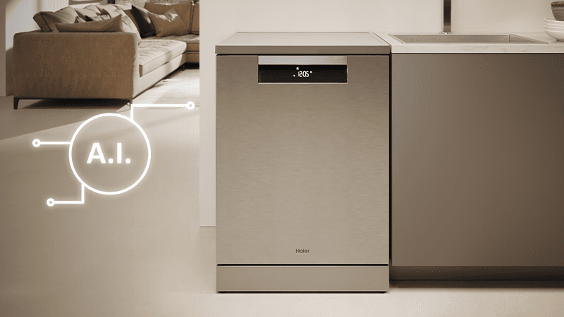 Die Smart KI-Funktion macht jeden Spülgang effektiver und effizienter, da sie die Dauer und die Temperatur je nach Beladung und Verschmutzung automatisch einstellt.