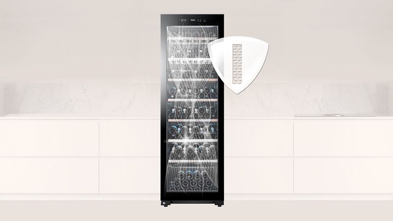 Obwohl Weinflaschen versiegelt sind, können sie immer noch durch den Korken “atmen”. Aus diesem Grund ist es wichtig, dass die Luft sauber ist, die Ihre Sammlung umgibt, um deren Geschmack nicht zu beeinträchtigen. Haier-Weinkeller enthalten einen Aktivkohlefilter, der saubere Luft im Inneren sorgt, so dass Ihre Flaschen immer zum Genuss bereit sind.