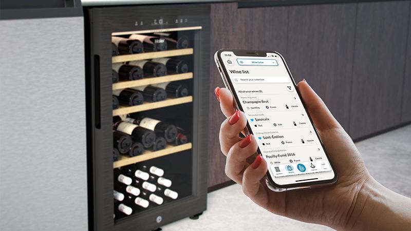 Die Haier Wine Bank 50 Series 7 Dualzone ist mit Wi-Fi verbunden, sodass Sie sich jederzeit und überall um Ihre Weine kümmern können. Mit der hOn App können Sie die Temperatur jeder Zone aus der Ferne steuern und die besten Programme für Ihre Flaschen vorschlagen. Die App ermöglicht es Ihnen auch, mit der praktischen Inventarisierungsfunktion den Überblick darüber zu behalten, was sich in Ihrem Weinkeller befindet, während Sie mit der Funktion “Finden Sie Ihren Wein” alle Weininformationen durch einfaches Scannen des Flaschenetiketts abrufen können. Darüber hinaus können Sie Ihre Sammlung schnell auffüllen, indem Sie auf den umfangreichen Katalog von Vivino zugreifen.