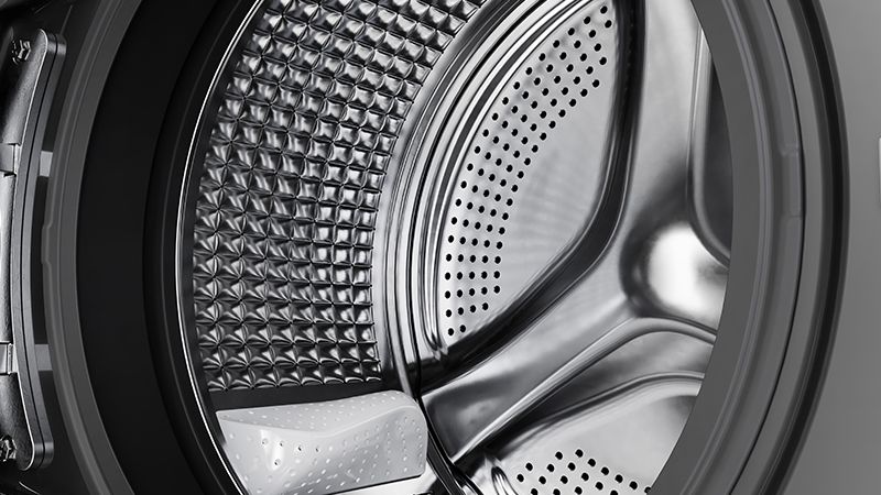 Die XL-Trommel sorgt mit ihrem besonders großen Durchmesser dafür, dass Deiine Wäsche mehr Platz hat und die Faltenbildung reduziert wird.