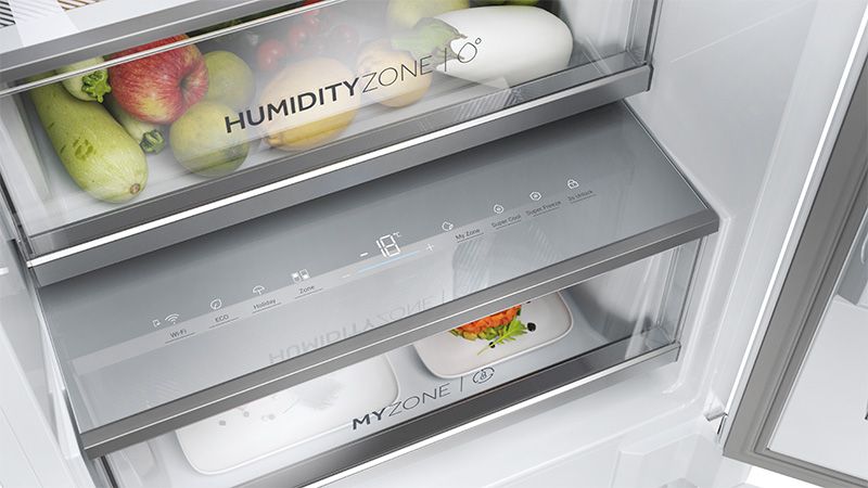 Übernehme die Kontrolle über die Aufbewahrung Deiner Lebensmittel. Mit My Zone kannst Du die Temperaturen der Fächer mit nur einem Tastendruck individuell anpassen, um maximale Frische zu gewährleisten. Und in der Humidity Zone beträgt die Luftfeuchtigkeit stets ideale 90 %, sodass die Qualität von Obst und Gemüse auch über einen längeren Zeitraum bewahrt werden kann.