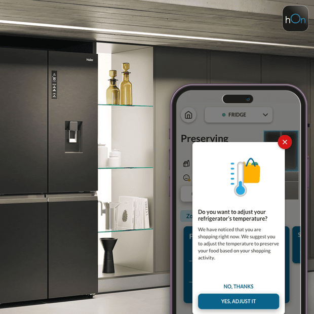Dein Haier-Gerät orientiert sich an Deinem Tagesablauf: Passe die Einstellungen Deines Kühlschranks mit der hOn App an Deinen vollen Terminkalender an und bleibe stets auf dem Laufenden.