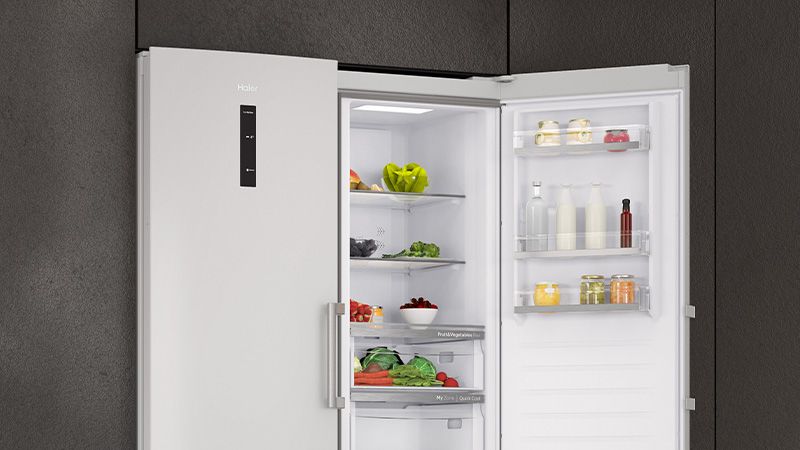 Die Gefrierschranktüren des Haier Instaswitch wurden so gestaltet, dass sie sich nahtlos in jeden Einrichtungsstil einfügen. Die Tür ist beidseitig verwendbar, und da sie sich um 90° öffnen lässt. Sie müssen beim Ausmessen, der für den Einbau des InstaSwitch erforderlichen Breite, keine zusätzlichen Zentimeter berücksichtigen.