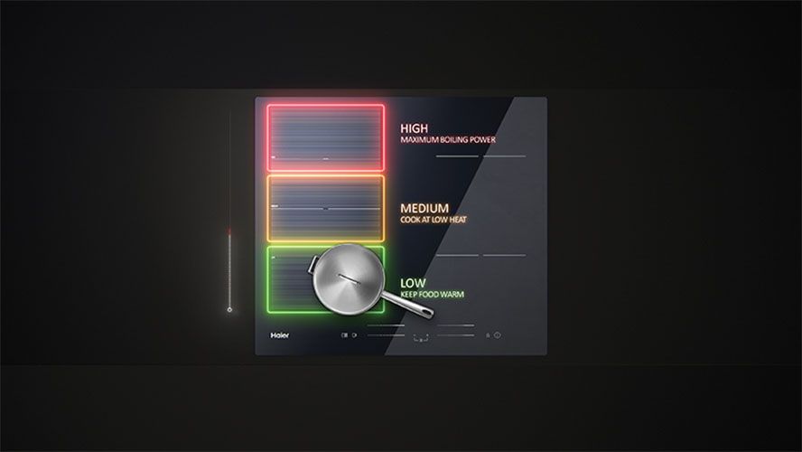 Mit Varycook kannst Du ganz einfach professionelle Kochtechniken in Ihrer Küche zu Hause beherrschen. Indem Du Deine Pfanne über das Kochfeld schiebst, kannst Du im Handumdrehen zwischen 3 verschiedenen Wärmezonen wechseln, ohne irgendwelche Bedienelemente zu berühren. Die hohe Leistungsstufe ist ideal zum Kochen, die mittlere Stufe zum allgemeinen Kochen und die niedrige Stufe zum Warmhalten von Pfannen und zum Verarbeiten von delikaten Saucen und Desserts.
