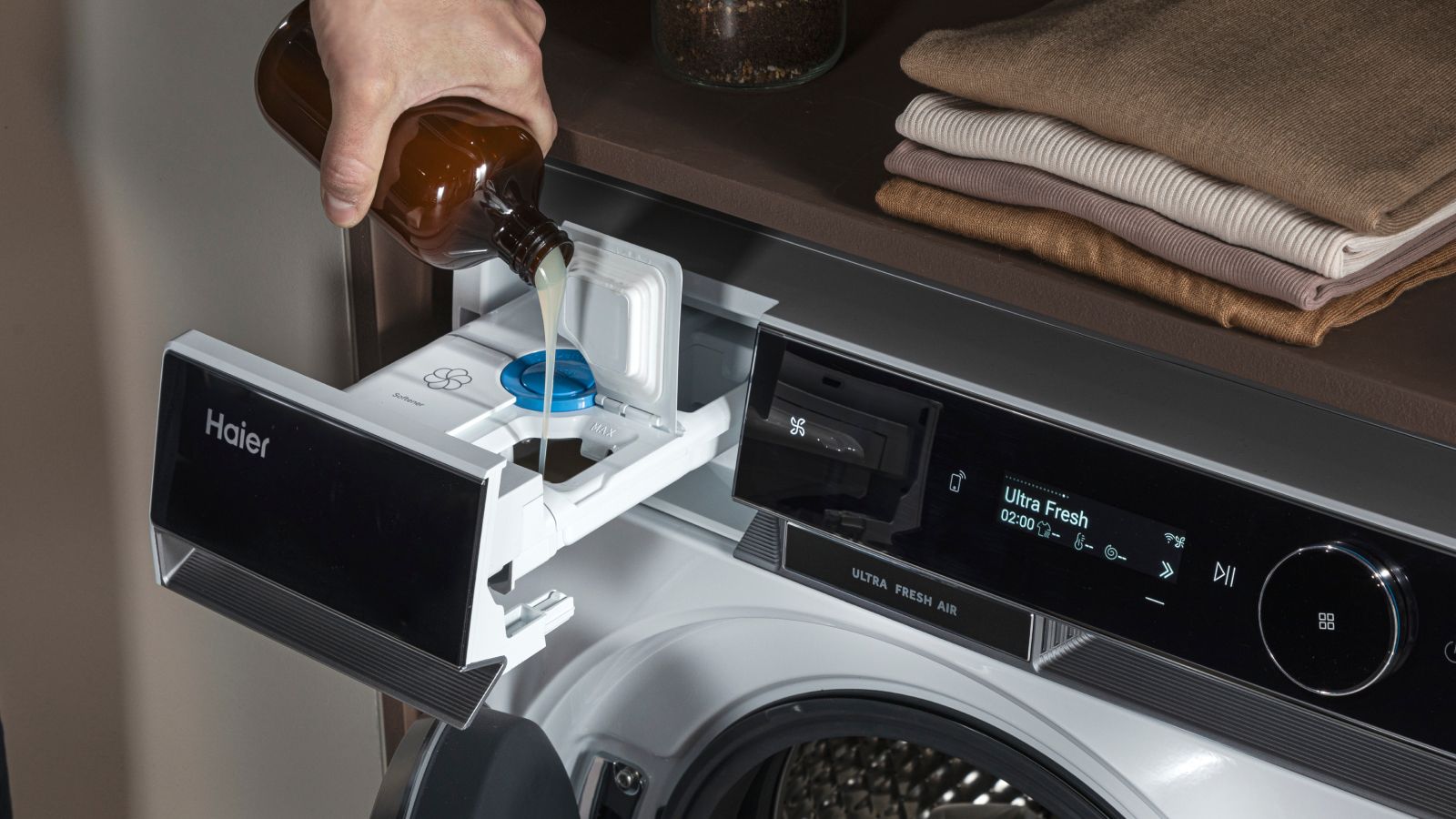 Optimiere den Verbrauch und minimiere die Umweltbelastung mit einem Motor mit langer Lebensdauer und der Energieeffizienzklasse A-40%. Außerdem reduziert Smart Dosing das Nachfüllen von Waschmittel und Weichspüler und ermöglicht es dem Gerät, die richtige Menge an Waschmittel zu verwenden.
