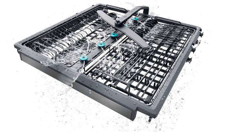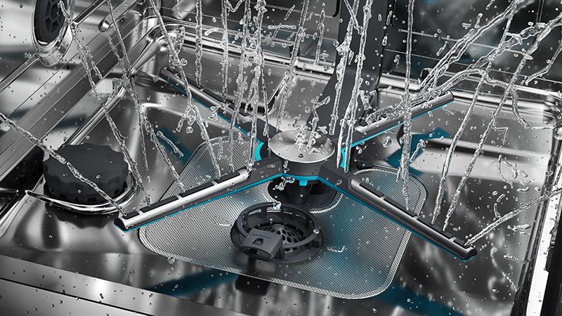 Doppia copertura di pulizia del cestello inferiore grazie al braccio X Spray, che raggiunge ogni angolo della lavastoviglie e dona alle stoviglie una straordinaria brillantezza.