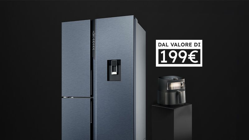Dal 15 giugno al 31 agosto 2025, acquista uno dei frigoriferi in promozione e ricevi in omaggio una friggitrice ad aria da 7 litri dal valore di 199€.